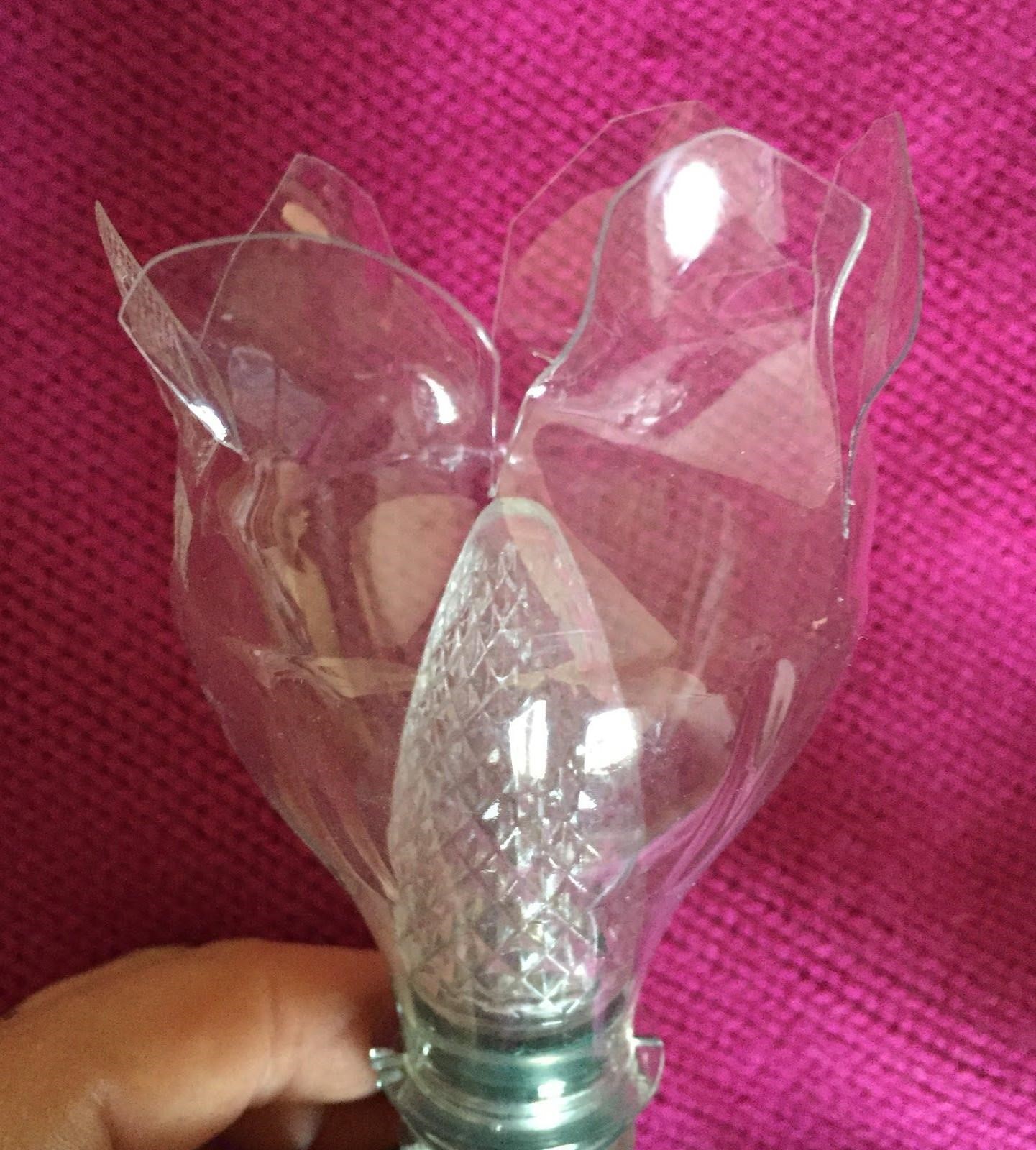 - To create the petals, cut equally spaced vertical lines. The vertical cuts should be approximately 3-4 inches in length, to ensure the bulb is covered, or can paint any visible bulbs.