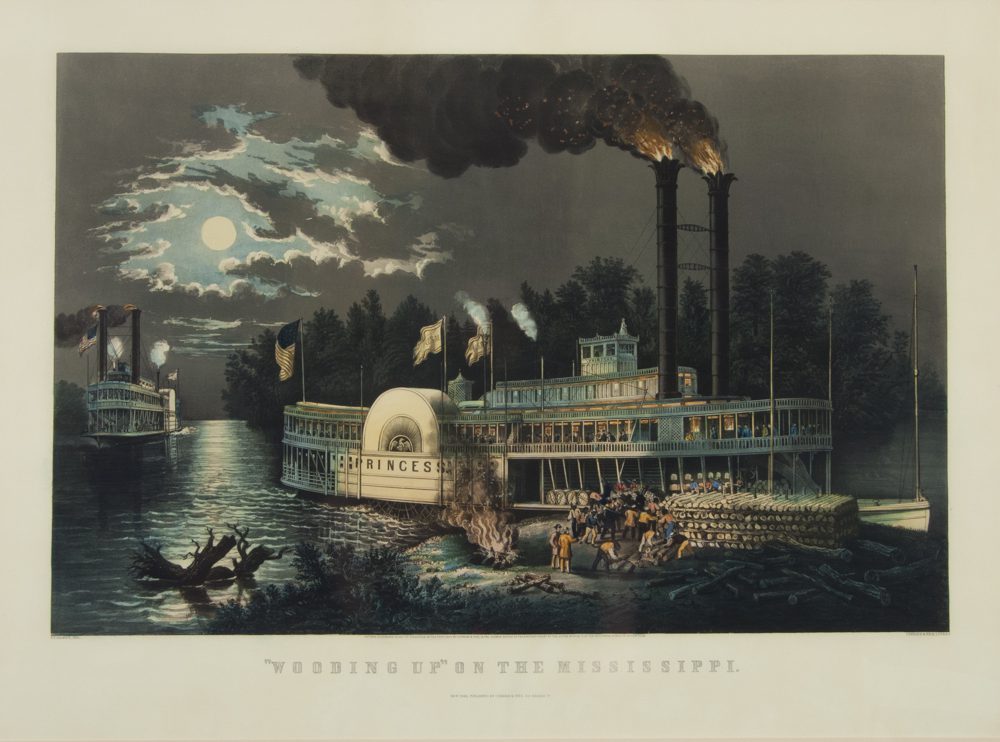 - “Wooding Up” on the Mississippi, Currier & Ives and Frances Flora Bond Palmer, 1863′